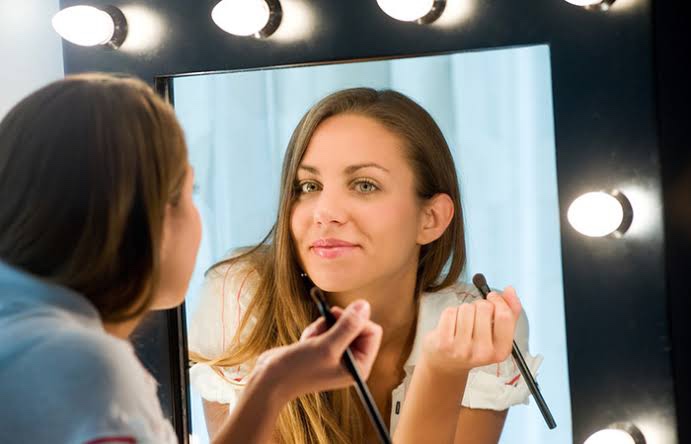 - Invest in a makeup mirror with built-in LED lights. These mirrors often simulate natural daylight and can provide an accurate view of your makeup.